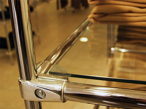 - Για να δημιουργήσετε ράφι χρειάζεστε ενα σετ πρόβολα ραφιού (2 τεμάχια) που πιάνουν πάνω στην κολώνα και μπορούν να στερεώσουν είτε ράφι μελαμίνης είτε κρυστάλλινο ράφι της αρεσκείας σας.