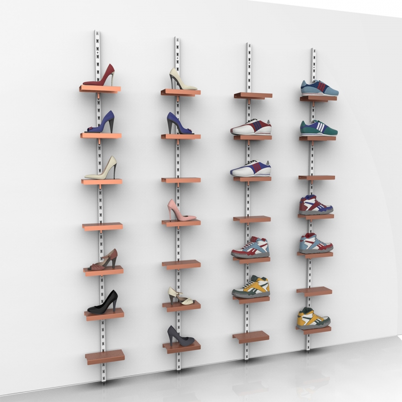 Ιδανικό σύστημα για την προβολή ενδυμάτων, αθλητικών ειδών, υποδημάτων κ.ά. Μπορείτε να χρησιμοποιήσετε κάθε κολώνα μεμονωμένη ή να δημιουργήσετε ένα σύστημα τοίχου με κρεμάσεις και ράφια που θα τα ρυθμίζετε κάθε φορά στο ύψος που θέλετε ανάλογα με τις ανάγκες σας.