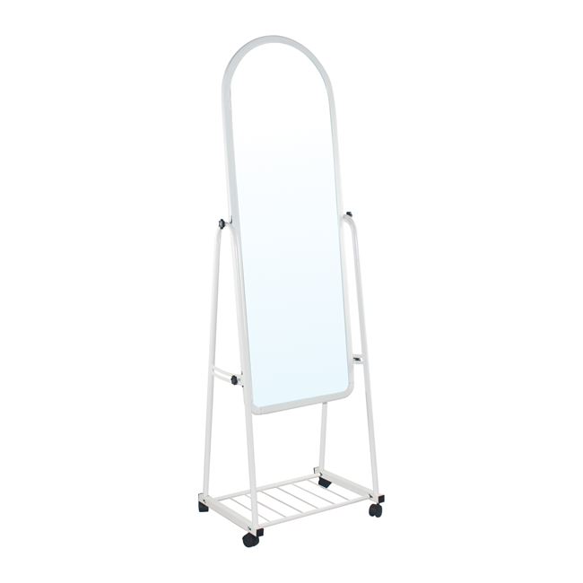 Καθρέπτης δαπέδου με μεταλλικό στρογγυλό σκελετό σε λευκό χρώμα.