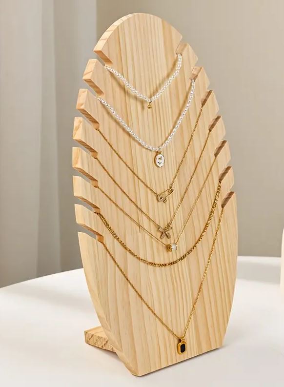 Ξύλινο πλακέ Stand, ιδανικό για αλυσίδες λαιμού-κολιέ.