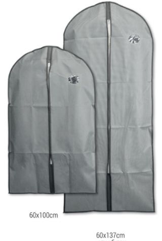 Υφασμάτινες θήκες ενδυμάτων και κοστουμιών, σε γκρι χρώμα.